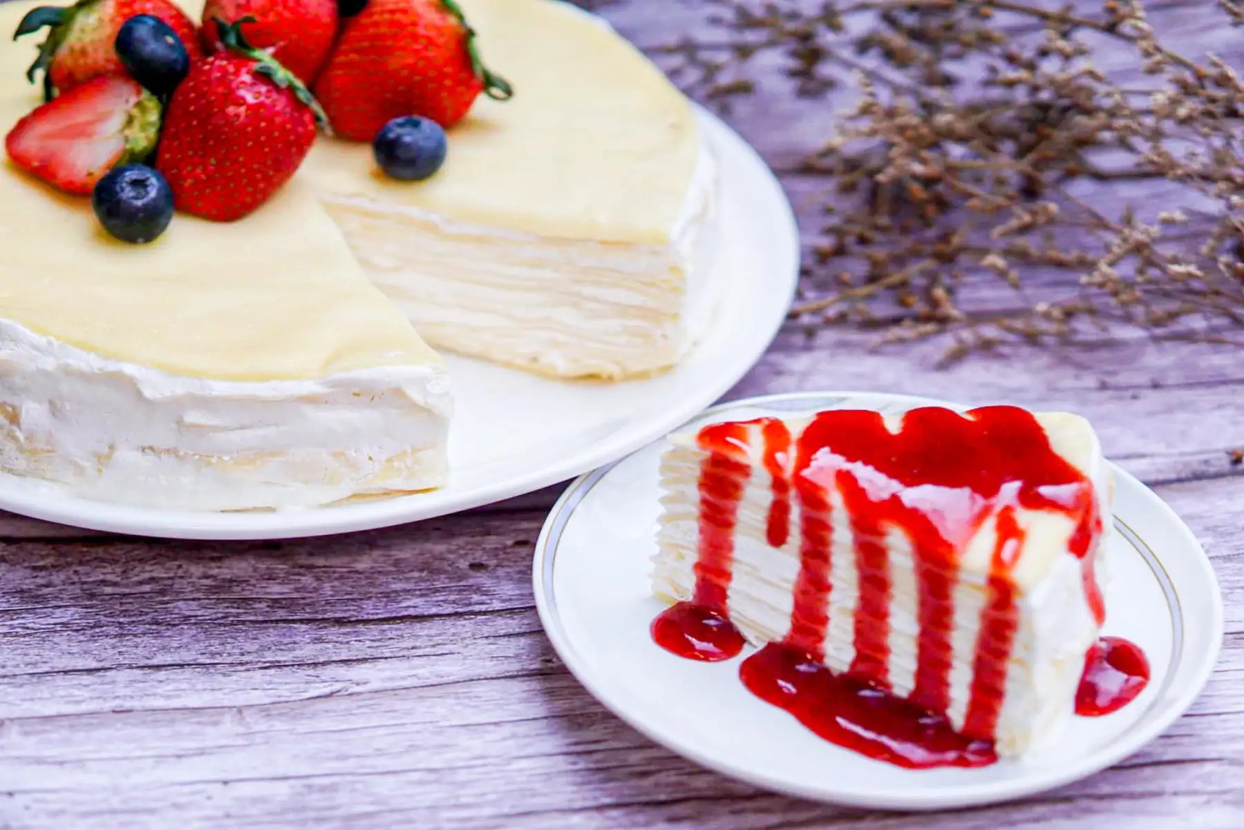 - เค้กมะพร้าว, ฝอยทองลาวา และสตรอเบอร์รี่เครปเค้ก