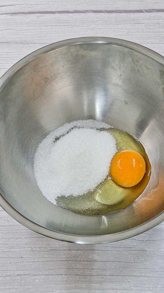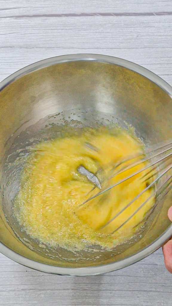 1. ตีไข่ กับ น้ำตาล จนเข้ากัน