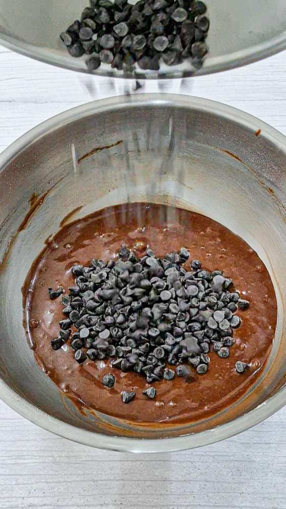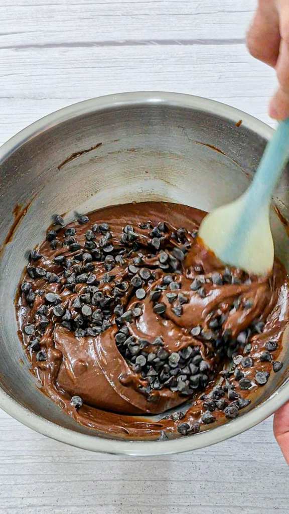 5. ใส่ช็อกโกแลตชิพ ใช้ไม้พายคนให้ส่วนผสมเข้ากัน